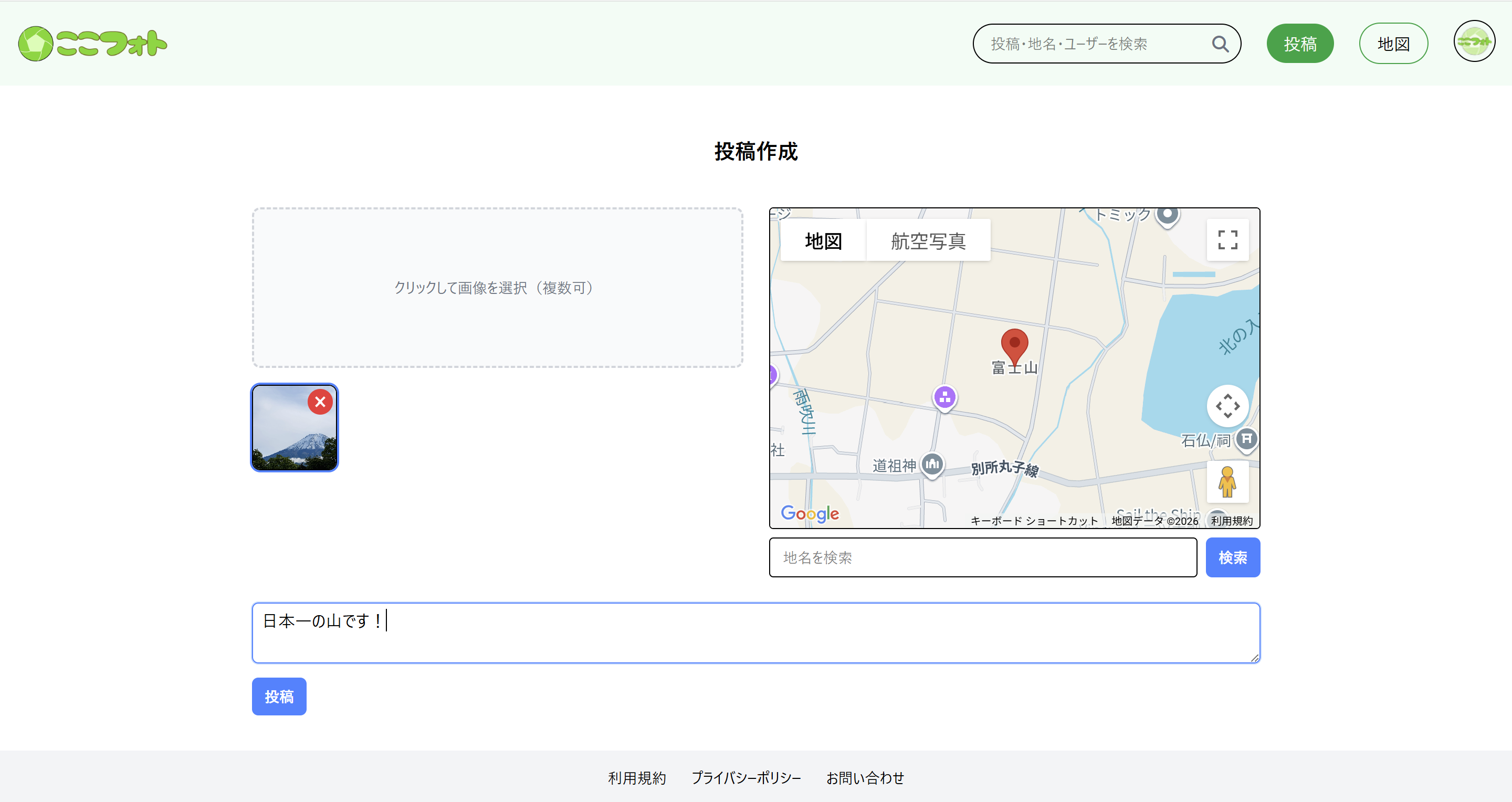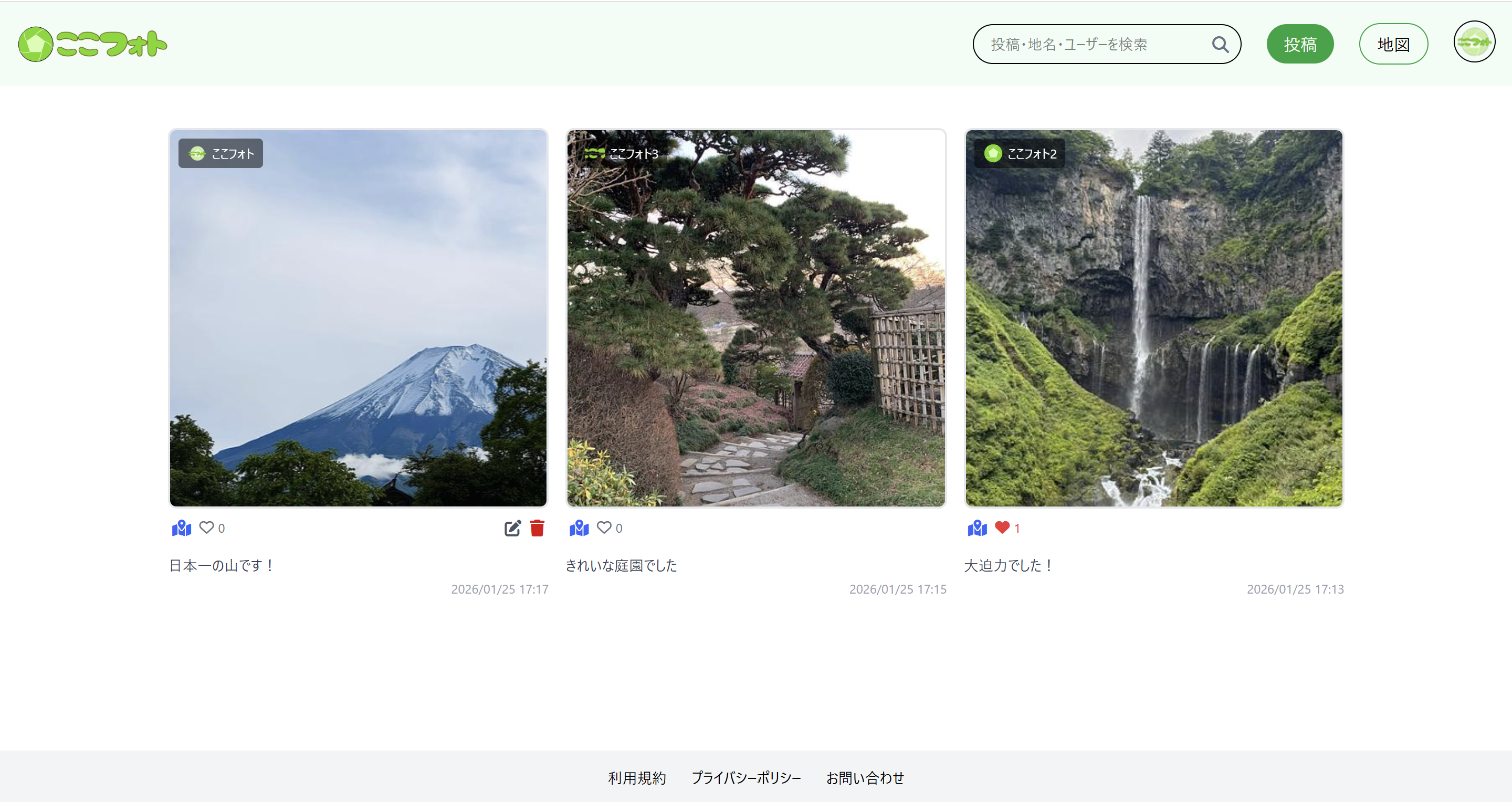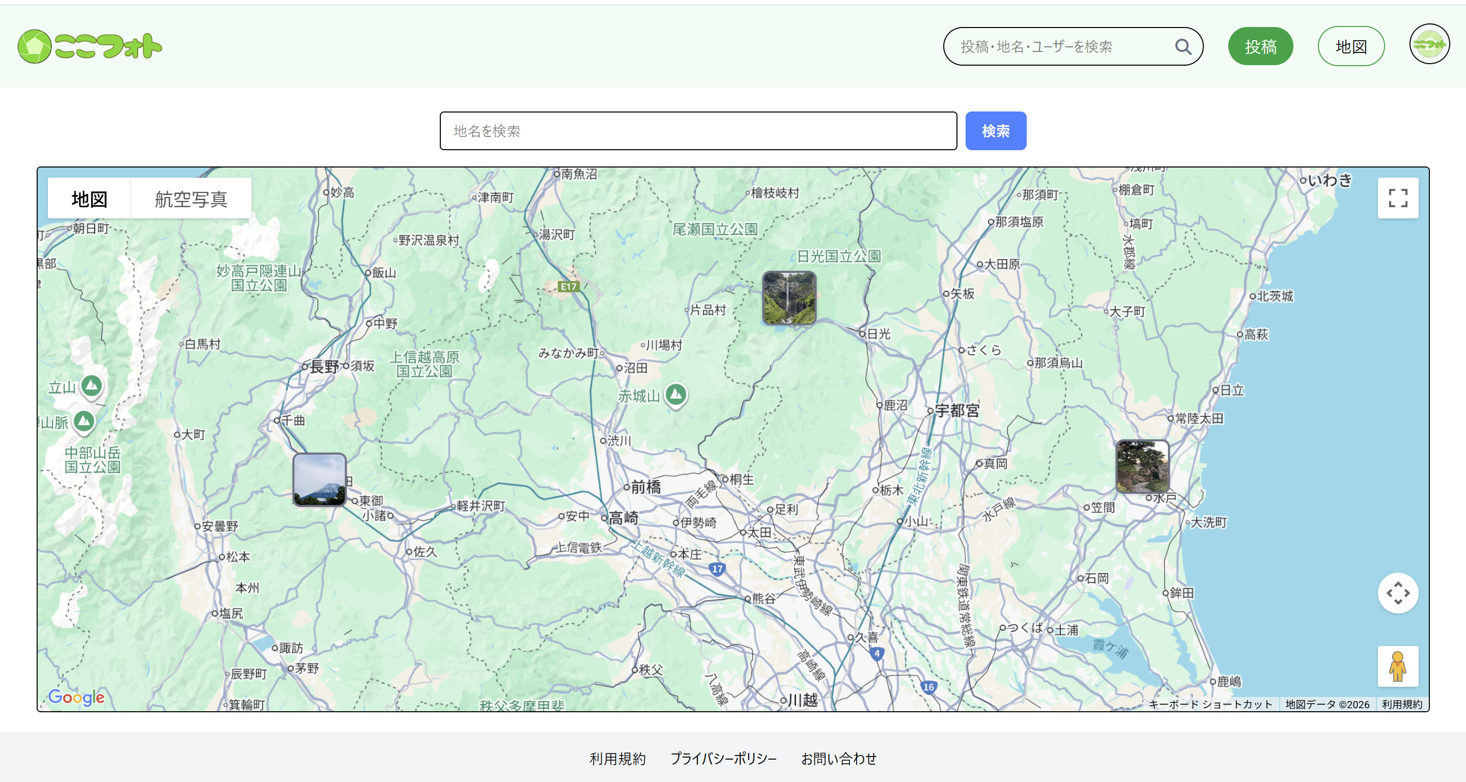 ここフォトは、地図アプリと写真投稿型SNSを掛け合わせたサービスです。